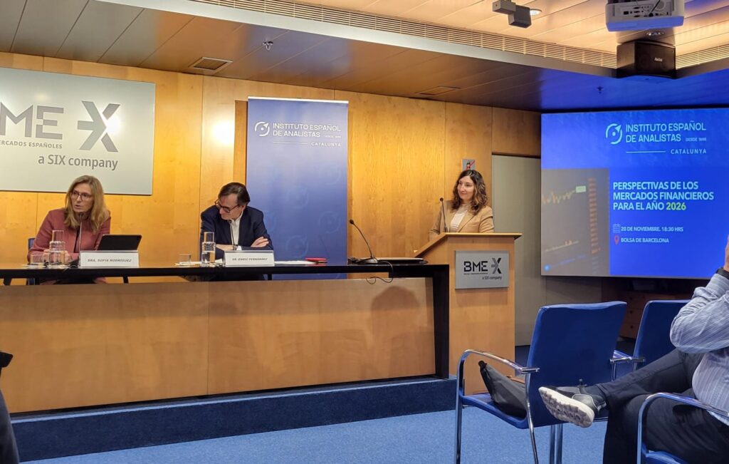El pasado jueves 20 de noviembre, en la sala de actos de la Bolsa de Barcelona, tuvo lugar la tradicional Jornada de Perspectivas de los mercados financieros  para el año 2026, organizada por la Delegación Catalana del Instituto Español de Analistas.